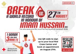 So what are you waiting for? Donate blood, save lives, get a free PDF version of the “Who is Hussain?” book by I.M.A.M., and break a world record all in the name of Imam al-Hussain (p).