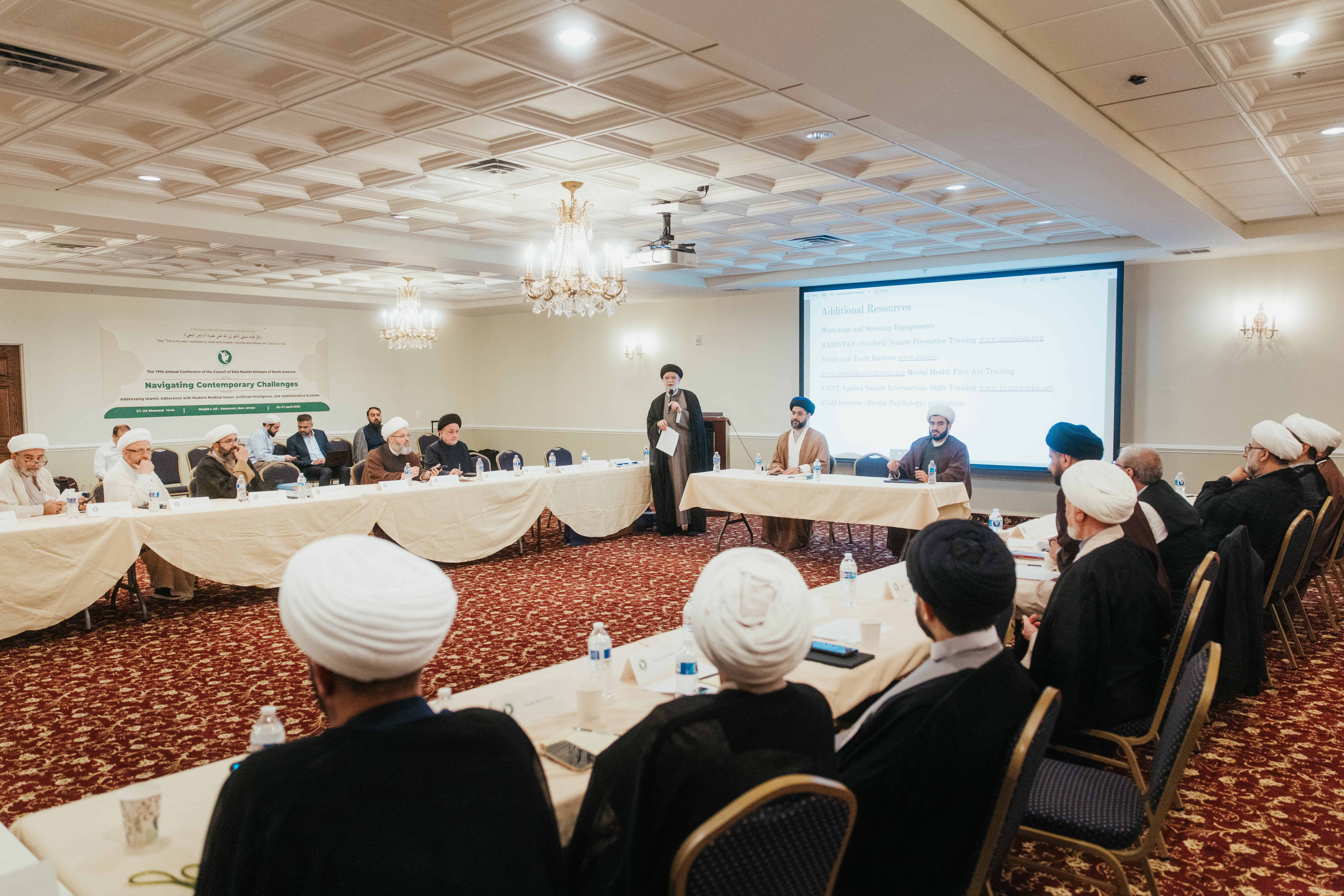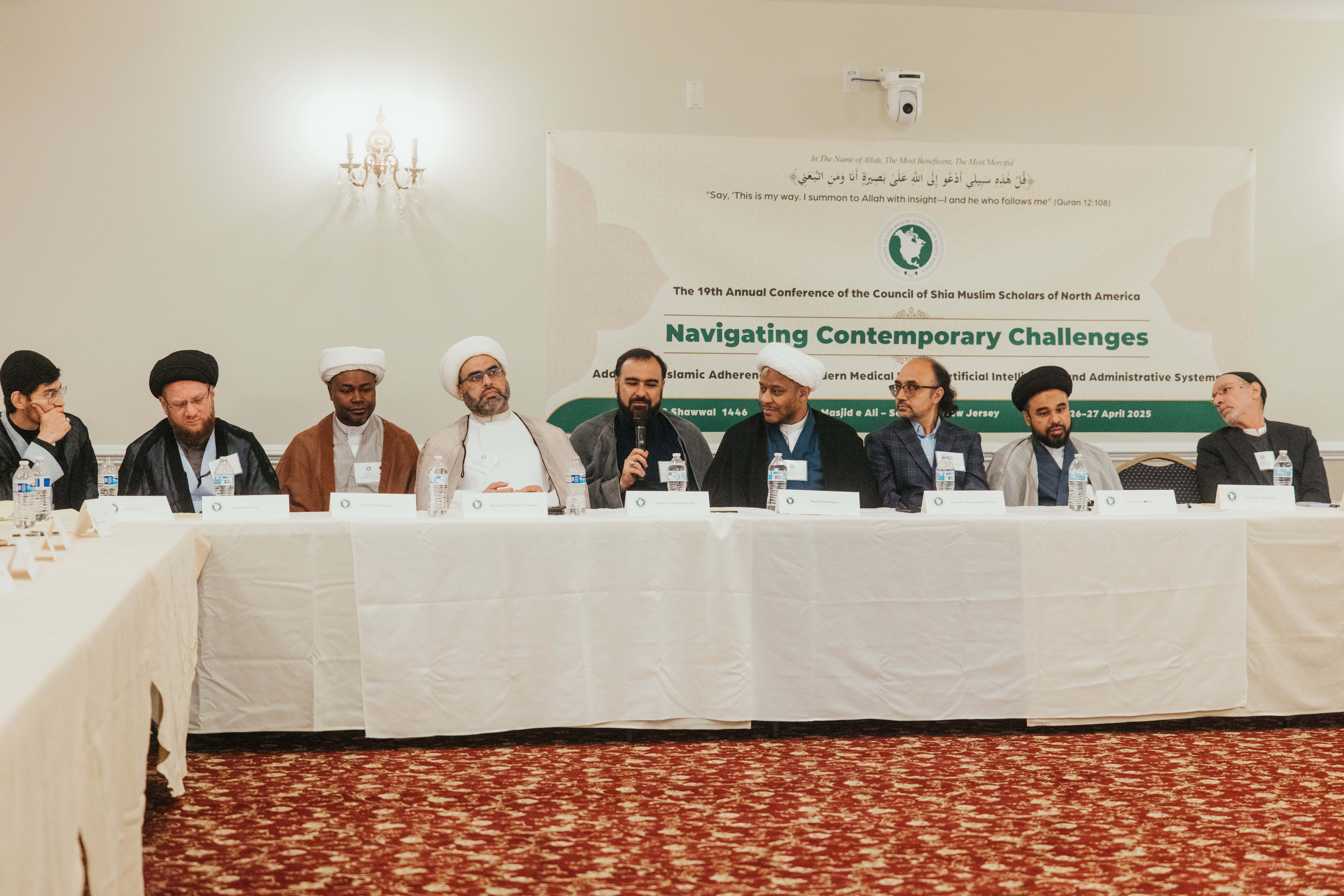 Inspired by the Quranic verse, “Say, ‘This is my way: I invite to Allah with insight—I and those who follow me” (12:108), the 19th Annual Conference of the Council of Shia Muslim Scholars of North America convened at Masjid-e-Ali in Somerset, New Jersey, under the theme “Navigating Contemporary Challenges”. Scholars, preachers, and imams from across the United States and Canada gathered on April 26 and 27, 2025 (27 and 28 Shawwal 1446 AH) to address the impact of unprecedented societal changes on Muslim communities, particularly matters related to medicine and artificial intelligence. As Muslims continue to deepen their roots in the West, increasingly complex issues require scholarly engagement to clarify the position of Islam. Thus, the conference attendees examined critical topics, including: