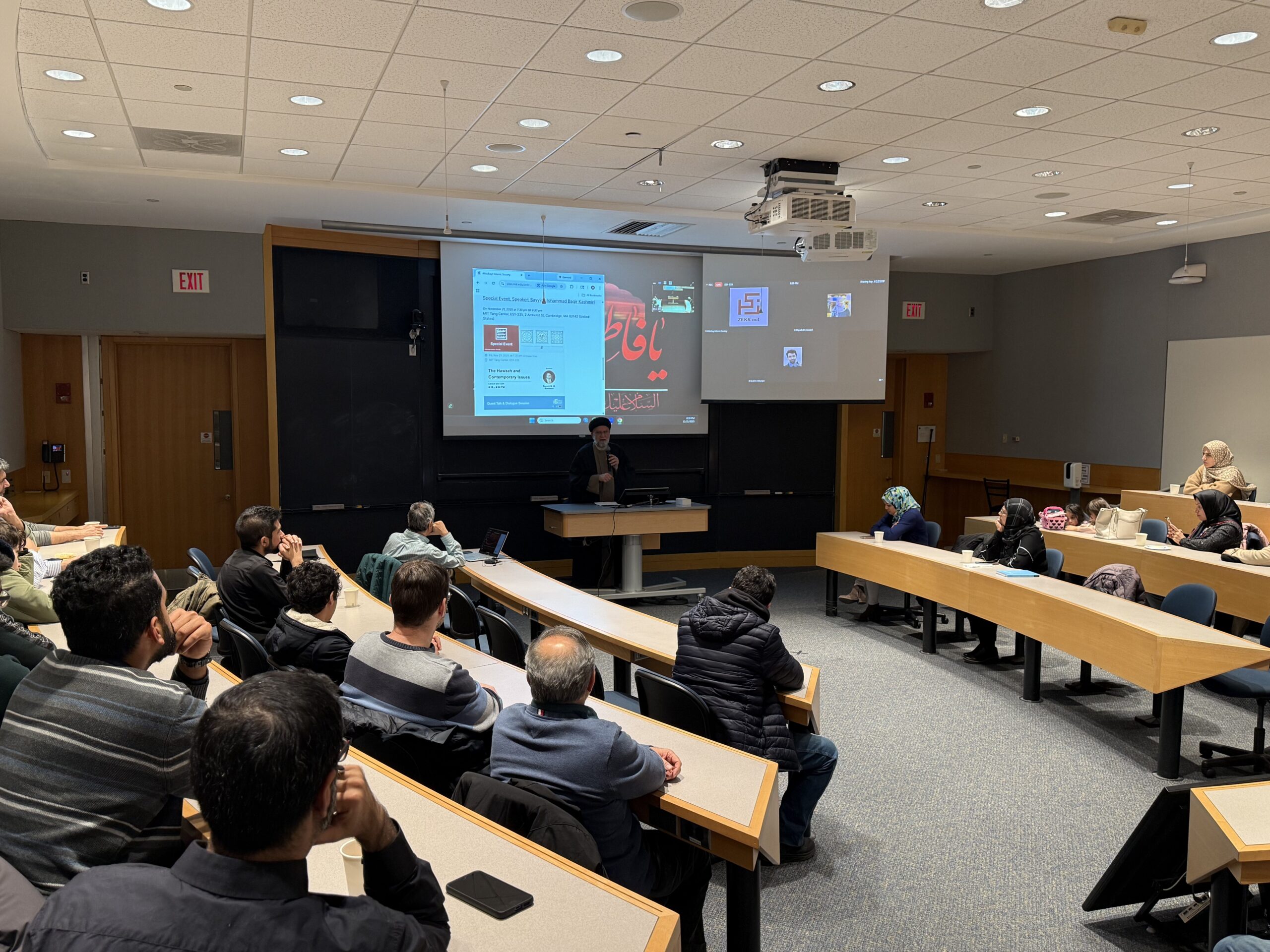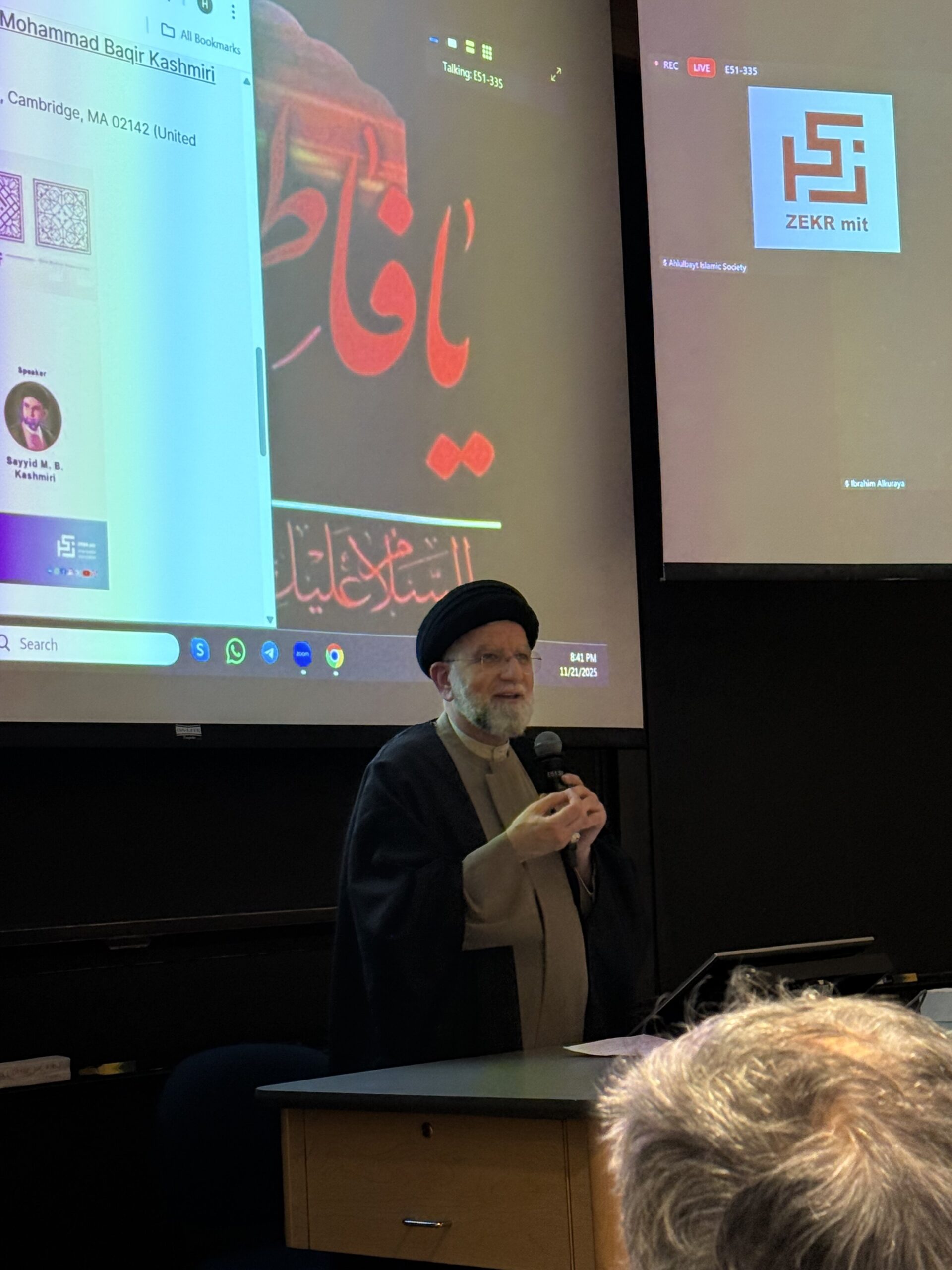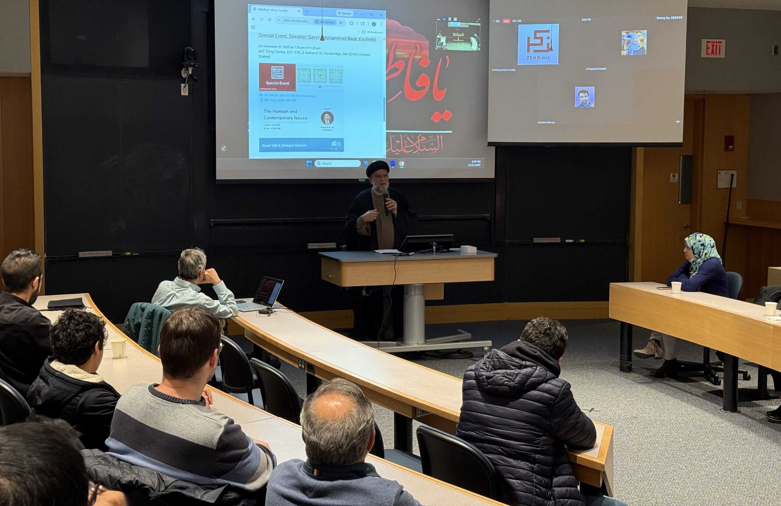 Upon the invitation of the Ahlul Bayt Society (Zekr) at the Massachusetts Institute of Technology (MIT) in Boston, Sayyid Kashmiri delivered a lecture on Friday, November 21, 2025, addressing the role of contemporary issues in religious studies, scholarly research, and juristic opinions issued by leading Shia jurists within the Hawzah (seminary). He highlighted the seminary’s ongoing engagement with emerging developments — most recently, the challenges and questions posed by Artificial Intelligence (AI).